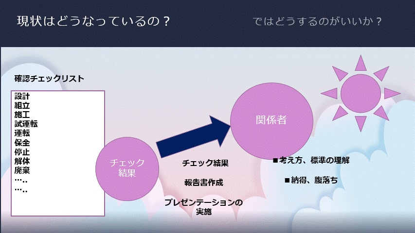 定常状態のリスクのほかに、予見できるヒューマンエラーを含む非定常状態のリスクを対象とすることを忘れないことです。さらに人の視点からエルゴノミックスも忘れないことです。